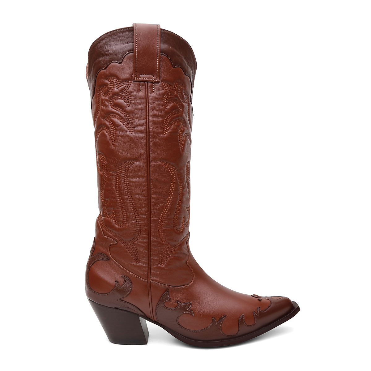 Um modelo que combina personalidade e elegância para composições marcantes. Inspirada no estilo western clássico, a bota traz bico fino e cano com ricos bordados em arabescos que valorizam o design e reforçam seu caráter artesanal e sofisticado.