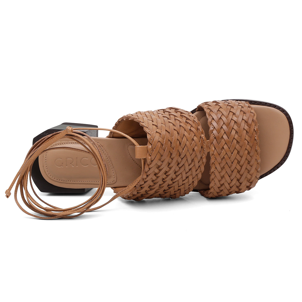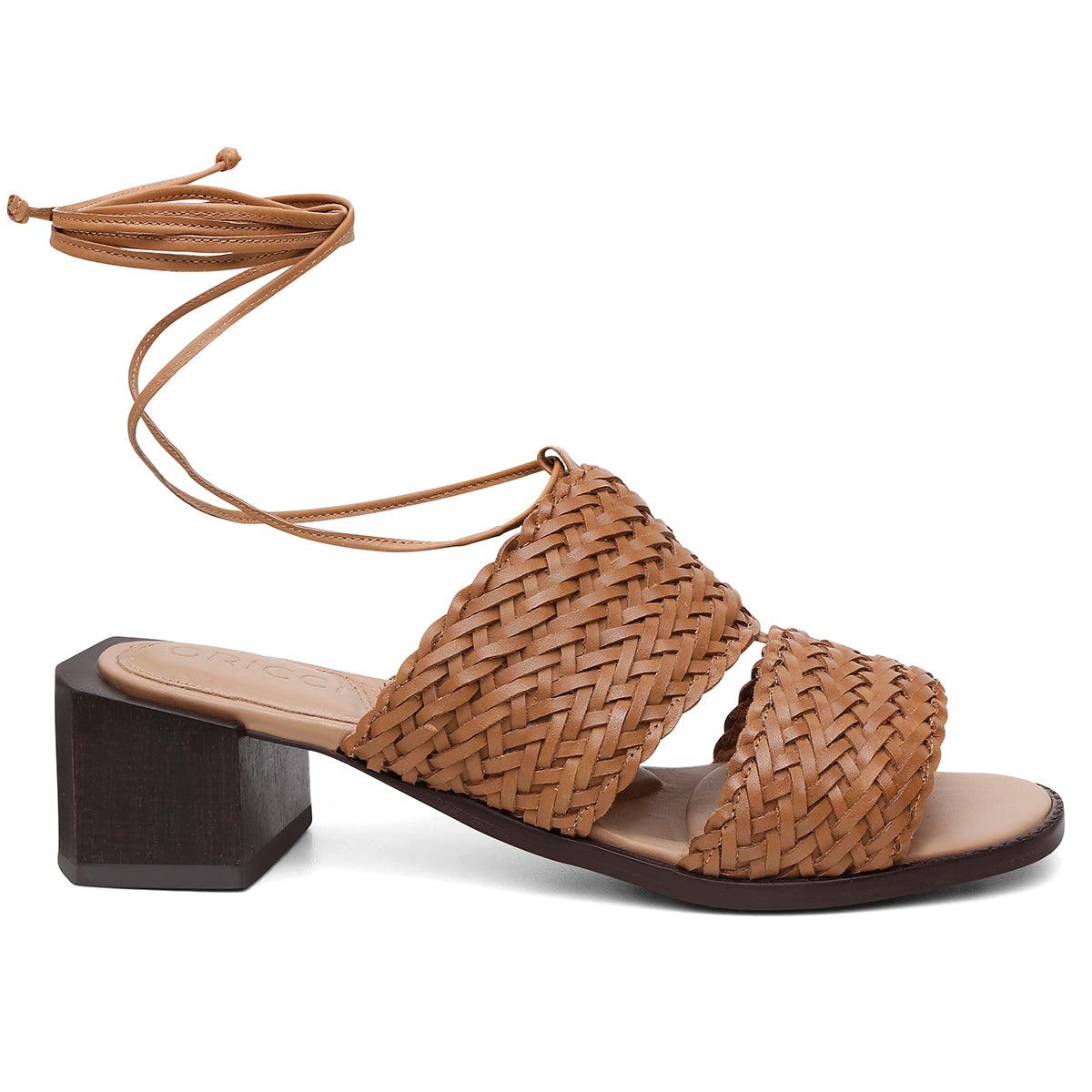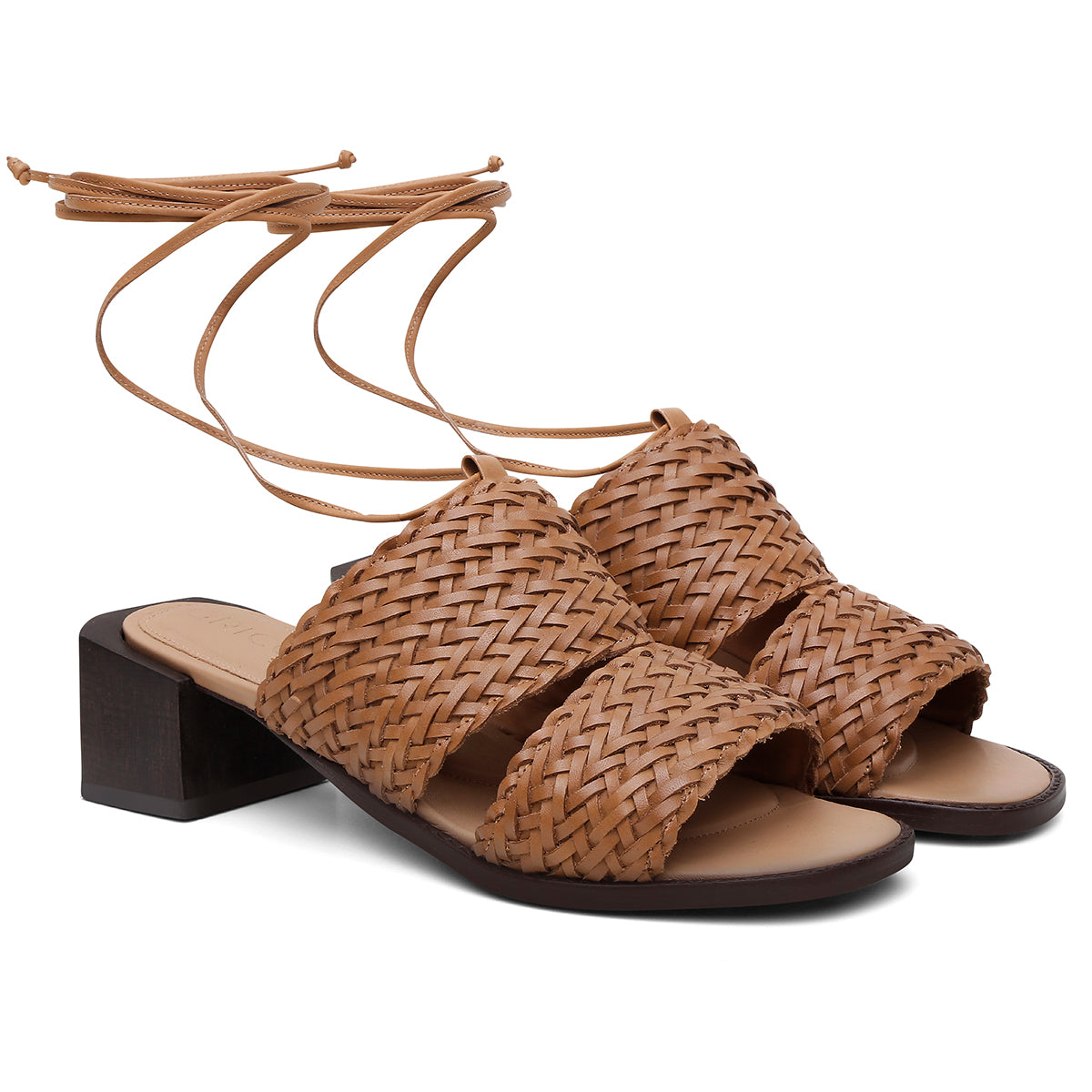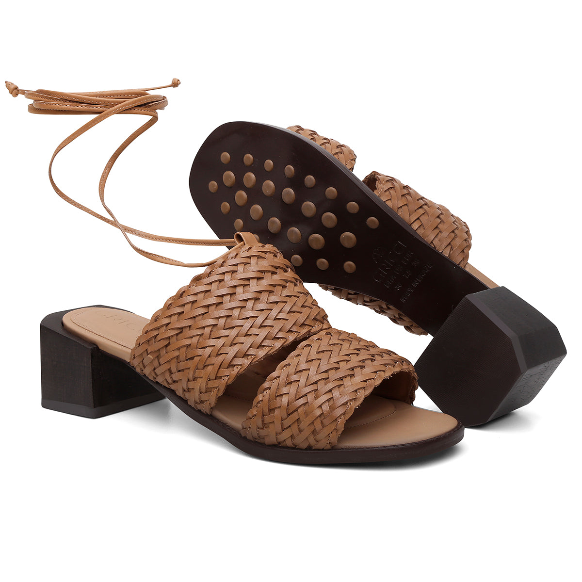 Descrição: Tamanco em tressê - couro entrelaçado - com tira fina que envolve o tornozelo oferecendo ajuste seguro e delicado, frente levemente arredondada e salto quadrado em madeira natural, adornado com laterais chanfradas. O solado é em couro com insertos antiderrapantes e a palmilha é confort exclusiva Gricci.