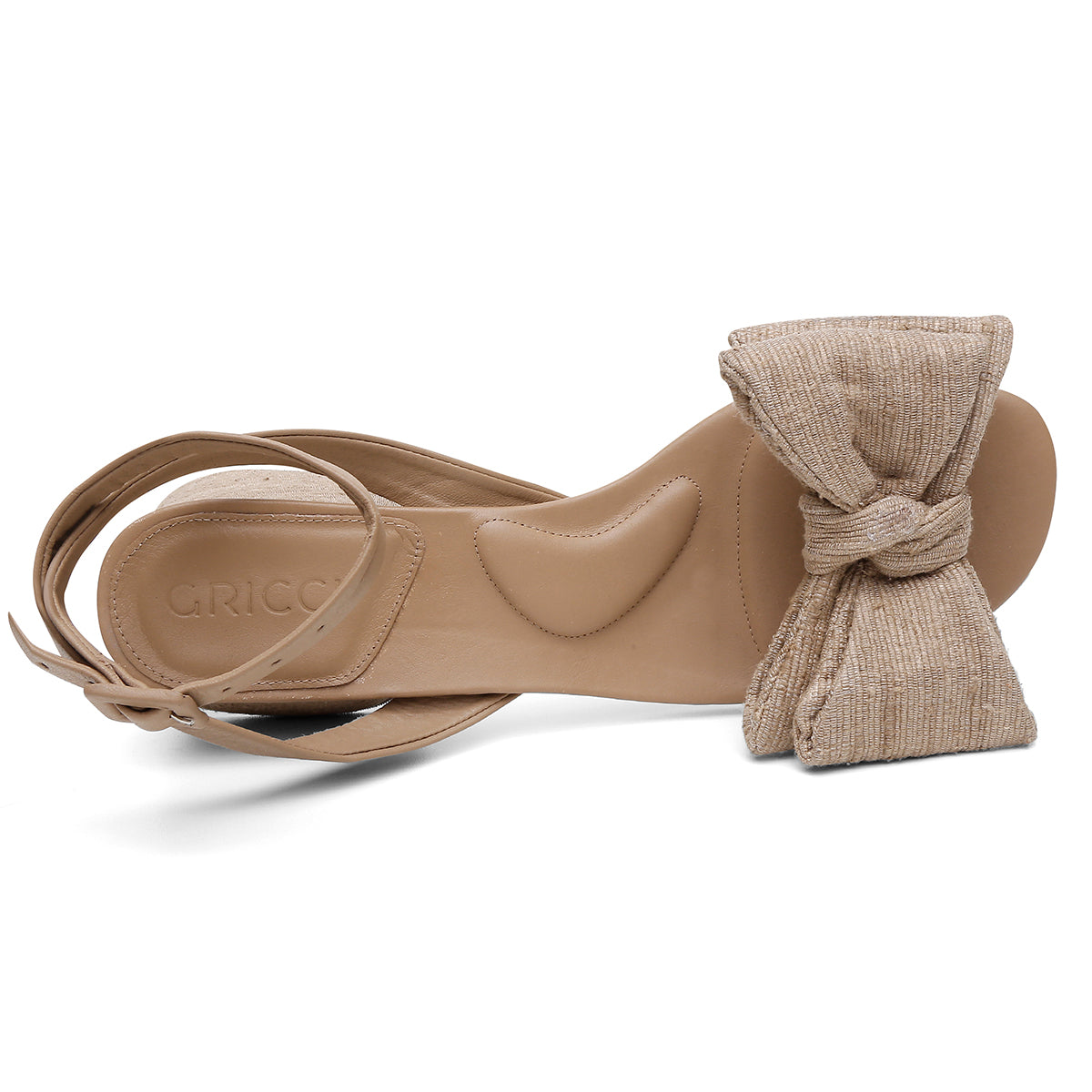 Com laço em seda natural Casulo Feliz, essa sandália traduz delicadeza e sofisticação em cada detalhe, equilibrando conforto e um design autoral que valoriza produções elegantes e atemporais.