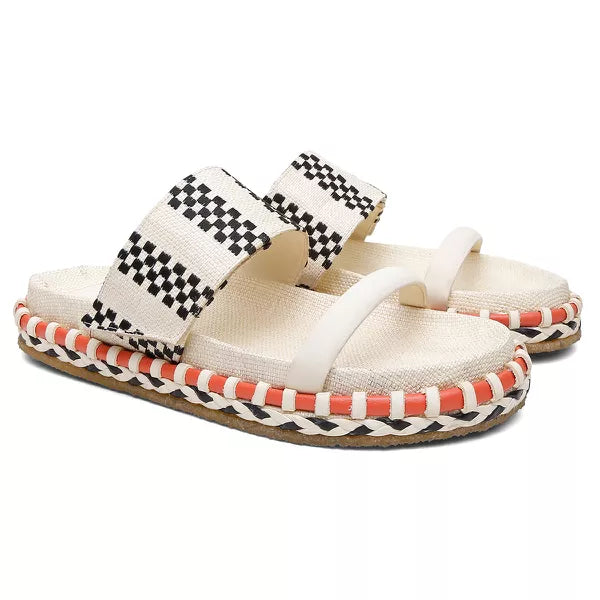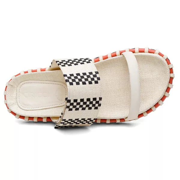 Uma papete que une palha bordada e detalhes artesanais, com um toque vibrante de coral. O solado de crepe completa o estilo com conforto natural.